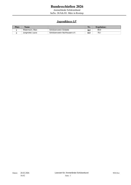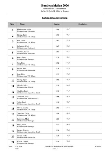 Achtung: Wir schießen dieses Jahr wieder in Rostrup!!! -