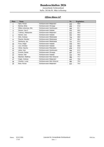 Die ruhigste Hand konnte Dieter Martens (SV Leuchtenburg) vorweisen mit 318,1 Ringen, auf dem zweiten Platz landete Renate Gerdes (SV Hahn) mit 315,5 Ringen. Den dritten Platz konnte sich mit einem minimalen Vorsprung Rüdiger…