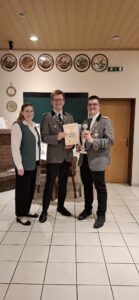 Danach wurde zuerst Luca mit der silbernen Nadel des ASB für seine Leistung beim Bundesschießen ausgezeichnet.